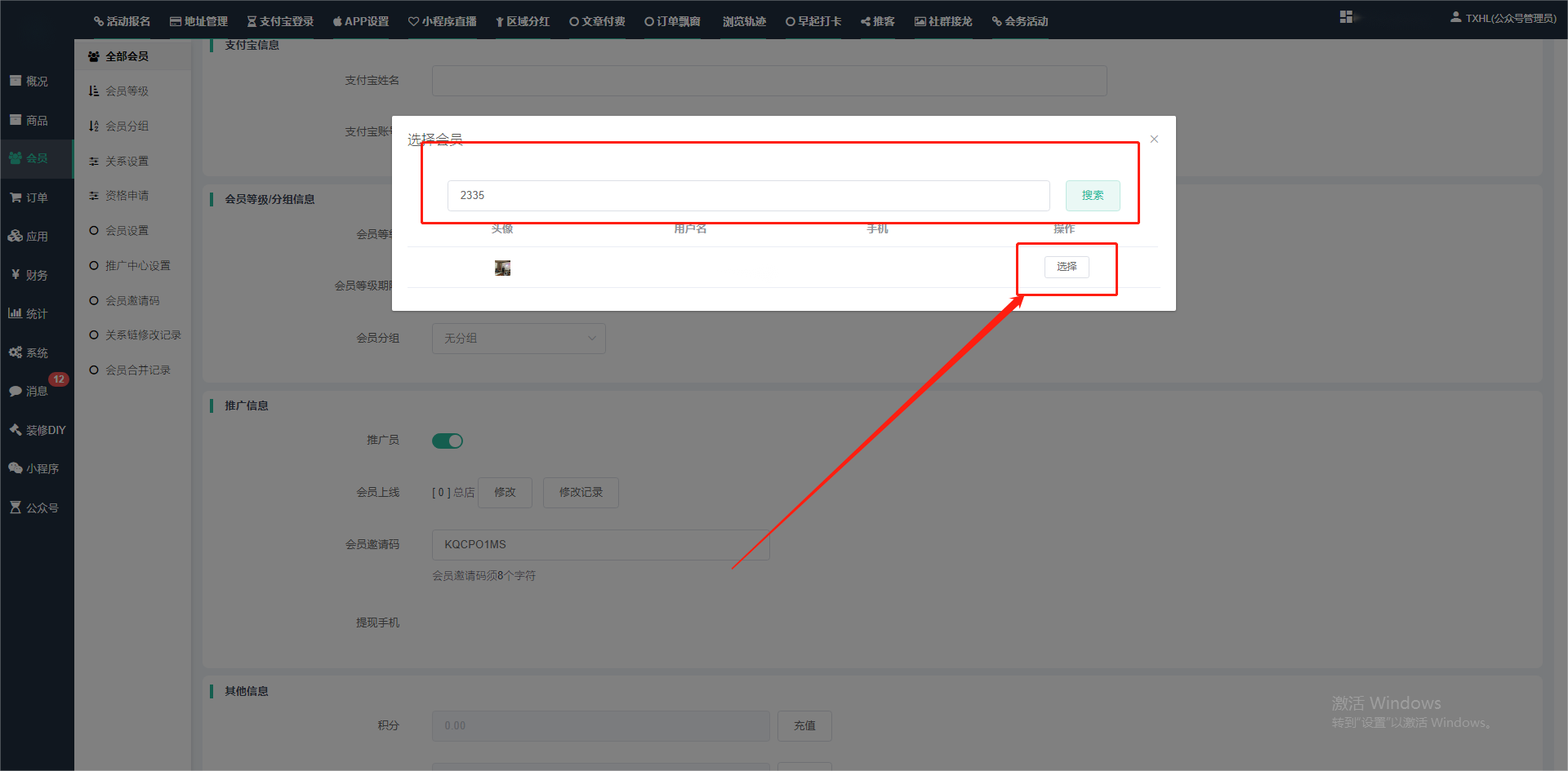目录 搜索 展开 一、前期准备资料二、数字乡村码-上线操作指南1、服务号的申请流程及认证2、申请小程序流程3、开放平台绑定小程序和公众号三、数字乡村码-系统操作数字乡村码系统管理-概况数字乡村码-商品管理1、发布商品2、商品列表3、商品表单4、商品分类5、品牌管理6、配送模板7、评论管理8、优惠券管理9、商品标签10、退货地址设置11、满额优惠12、批量操作13、配送方式14、基础设置15、商品隐藏四、数字乡村码-会员管理1、全部会员2、会员等级3、会员分组4、资格申请5、会员设置6、推广中心设置7、会员邀请码8、会员关系链修改关系链修改记录9、会员合并记录10、账号注销管理11、会员设置中心五、数字乡村码-订单管理1、订单管理列表2、订单处理流程3、订单状态4、订单修改价格5、订单退款退货6、多包裹发货7、批量发货订单操作步骤8、催发货订单9、物流查询六、数字乡村码-财务管理1、余额设置2、会员余额3、充值记录4、转让记录5、余额明细6、收入明细7、提现设置8、提现统计9、积分管理10、转账审核11、收益广告12、批量充值七、数字乡村码-系统管理1、商城入口2、商城设置①、商城设置②、订单设置③、物流查询④、短信⑤、联系方式⑥、分类⑦、优惠券⑧、分享⑨、幻灯片⑩、广告位⑫、地图设置3、交易设置4、微信模板消息自定义消息模板(新版)自定义消息模板(旧版)小程序消息模板公众号模板消息变更公告5、语言设置6、权限管理7、多媒体管理八、数字乡村码-消息管理九、数字乡村码-应用管理十、数字乡村码系统-数据统计十一、数字乡村码-页面装修DIY1、模板管理2、店铺页面3、顶部导航4、底部导航5、DIY模板市场6、首屏广告7、基础设置8、装修DIY尺寸建议十二、供应商功能插件操作指南1、供应商2、门店-收银台门店申请和使用步骤门店管理①、门店-收银台 营销设置②、门店-收银台 分润设置门店分类门店申请门店审核门店商品门店商品订单收银台订单数据统计核销员基础设置默认设置门店装修3、微社区4、会务活动十三、营销插件操作指南活动报名提货卡新人奖微店问卷调查积分视频分享1、视频分享基础设置2、视频分享发现管理3、视频分享分类管理4、视频分享评论管理5、视频分享分红记录6、视频分享短视频中心每日红包幸运大抽奖签到优惠券二维码任务奖励优惠劵文章音频文章付费文章限时购新海报拓客卡操作流程积分活动素材中心视频红包十四、入驻门店应用类1、门店预约2、附近商品3、门店定位设置4、门店控制5、门店满额包邮6、门店满额减7、导入商品8、门店搜索9、门店股东10、核销券11、多门店核销1、商城后台设置2、前端功能演示十五、常见问题1、后台登录密码修改流程2、会员-余额,积分,后台如何进行充值与扣除3、如何修改上下级关系4、一种万能的获取商城小程序路径的方法 暂无相关搜索结果! 阅读次数:1557 本文档使用 模王系统 发布 3、如何修改上下级关系 如何修改上下级关系一.如何修改上下级关系?1.会员-全部会员-可以通过搜索用户的独立ID,或者用户微信昵称,找到此会员,然后点击右边的(操作)2.再点击会员详情。3.滑到下面,有个推广信息-会员上线,点击修改4.输入上级的ID号,点击搜索,出来此上级会员后点击选择。5.滑到最下面,一定要点击提交按钮。文档更新时间: 2024-01-05 14:50 作者:链上旅行